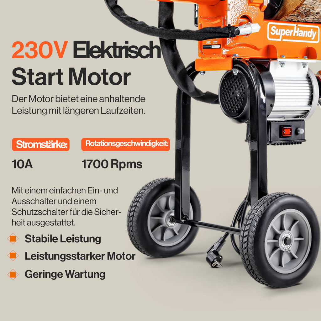- SPEZIALISIERUNGEN - Gebaut mit einem Hochleistungs-Elektromotor von 1500 W, der unser 16-Tonnen-System antreibt, verwendet die äußerst zuverlässige und bewährte 2-stufige 10 GPM Hydraulik-Zahnradpumpe und spaltet mühelos Stämme bis zu einer Länge von 20"/50cm und einem Durchmesser von 14"/35cm.